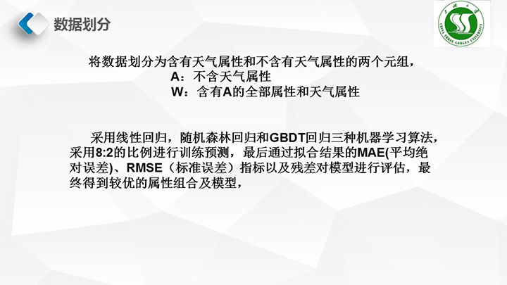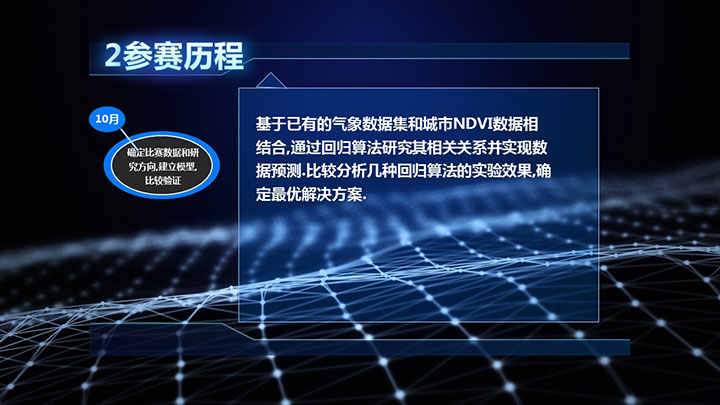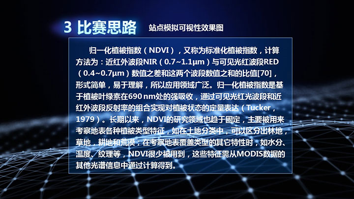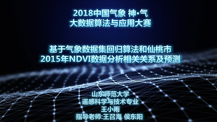 選手將關注點放在了氣候變化上,從植被覆蓋與具體氣象要素之間的聯系出發,利用3種回歸分析算法(梯度提升決策樹算法、隨機森林算法、線性回歸算法)進行了仙桃市氣溫、降水與歸一化植被指數(NDVI)的相關分析,擬選用模擬效果最好的回歸方法對未來氣溫、降水等氣象因子對于植被的影響進行預測,同時對站點氣象觀測數據以及植被指數進行了可視化展示。整個作品為未來植被對氣候變化的響應預測和可視化解決方案進行了一次有意義的創新和嘗試。
