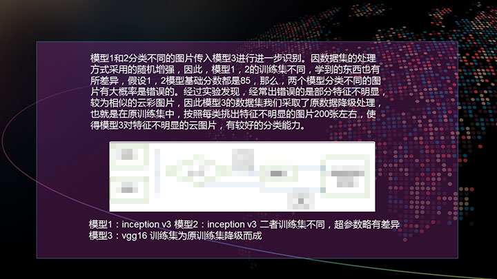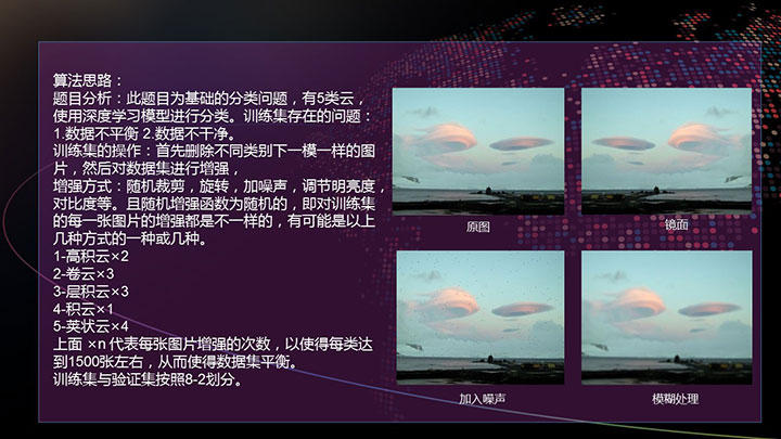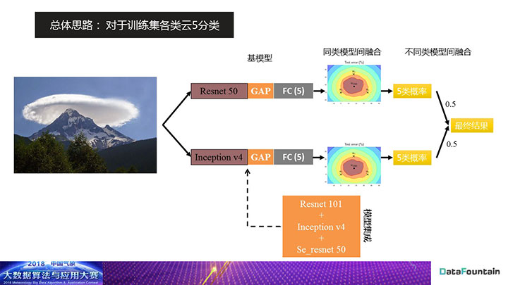 以resnet-101的成果為基礎,基于Dilated Deformable Renset架構,充分利用4217張彩云圖片數據進行機器學習訓練,根據五折交叉驗證法獲得多個彩云模型,實現對彩云形狀的分類。
