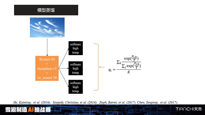 通過senet在局部感受野上將空間(spatial)信息和特征維度(channel-wise)的信息進行聚合最后獲取全局信息,借助Focal Loss函數降低大量簡單負樣本在訓練中所占的權重,利用模型蒸餾技術將復雜模型轉化為小模型從而提高訓練學習能力,結合隨機加權平均法,實現五類云彩的分類預測。