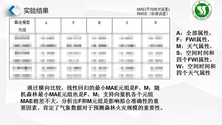 該組選手利用氣象數據作數據挖掘的方法來預測森林火災規模,對預測結果有益,數據收集成本非常低。